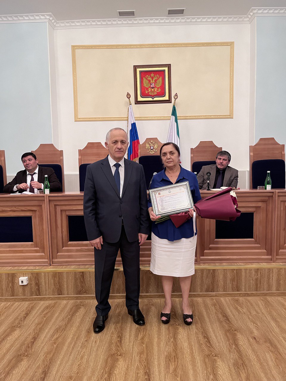 01.09.2025 председатель Верховного Суда Республики Ингушетия Газдиев И.Б. провел еженедельное совещание. В работе совещания приняли участие исполняющий обязанности заместителя председателя Верховного суда Ингушетии Баштовой Д.П., судья Верховного суда республики Коригова М.М., заместитель начальника Управления Судебного департамента в Республике Ингушетия Тимурзиев М.М., начальник Управления по организации деятельности мировых судей Республики Ингушетия Яндиев Р.М. и председатели районных (городского) судов. Обсуждались итоги работы судебных коллегий суда региона, районных (городского) судов за прошедшую рабочую неделю по рассмотрению дел по различным видам судопроизводства, а также актуальные вопросы правоприменения в сфере уголовного и гражданского процесса. На совещании рассмотрены текущие вопросы организации деятельности районных (городского) судов и мировых судей судебных участков республики. В завершение совещания за активное участие в организации на площадке проведения пленарного заседания Совета судей Российской Федерации 20-22 мая 2025 года в г. Москве выставочной экспозиции, посвященной деятельности судебной системы Республики Ингушетия и 80-й годовщине Победы в Великой Отечественной войне, и по итогам работы за первое полугодие 2025 года председатель Верховного суда Ингушетии Газдиев И.Б. вручил исполняющей обязанности председателя Малгобекского городского суда Цечоевой Л.К. Почетную грамоту Верховного Суда Республики Ингушетия. ![]() Информация пресс-службы Верховного Суда Республики Ингушетия. При использовании ссылка обязательна. |