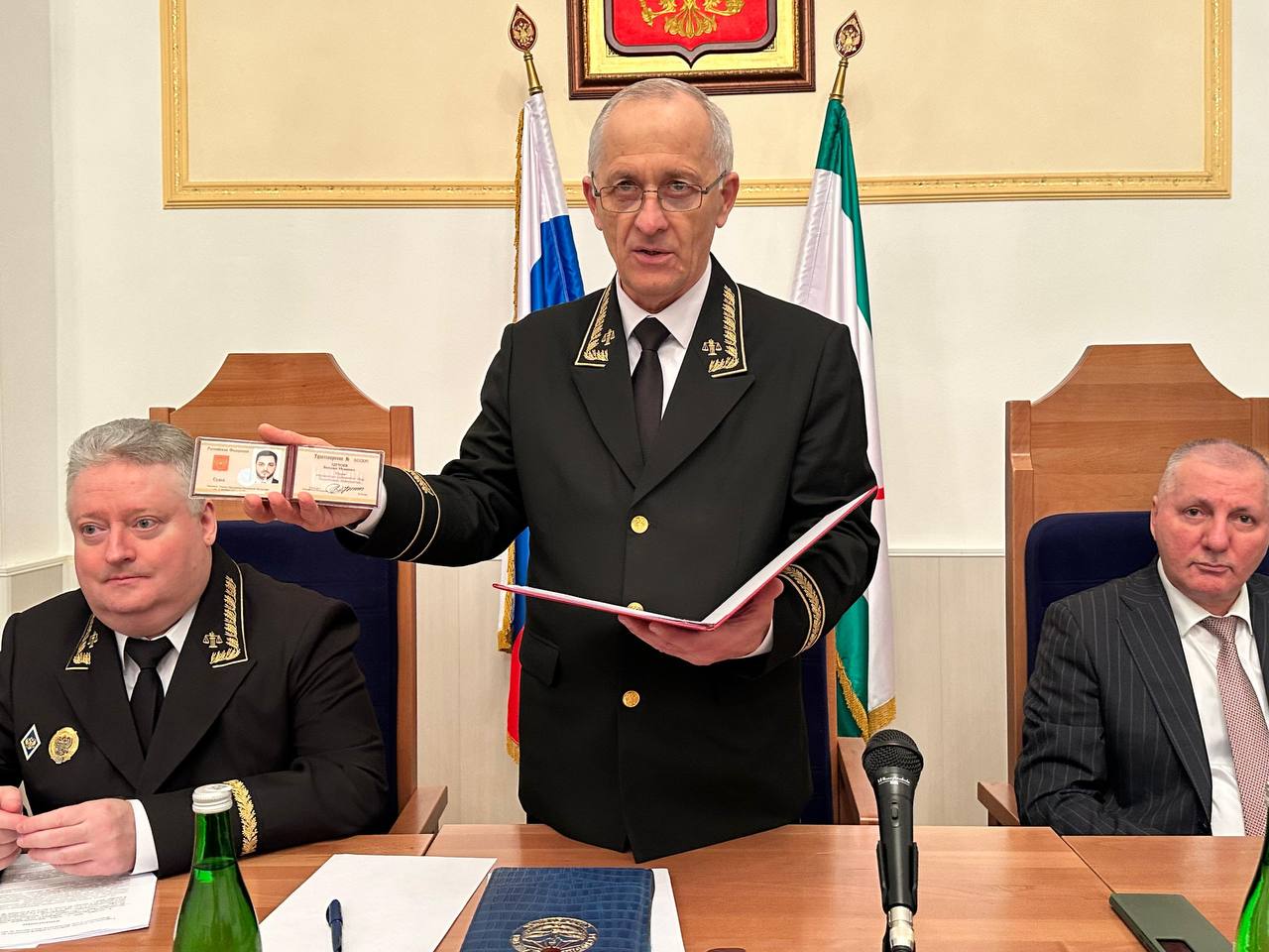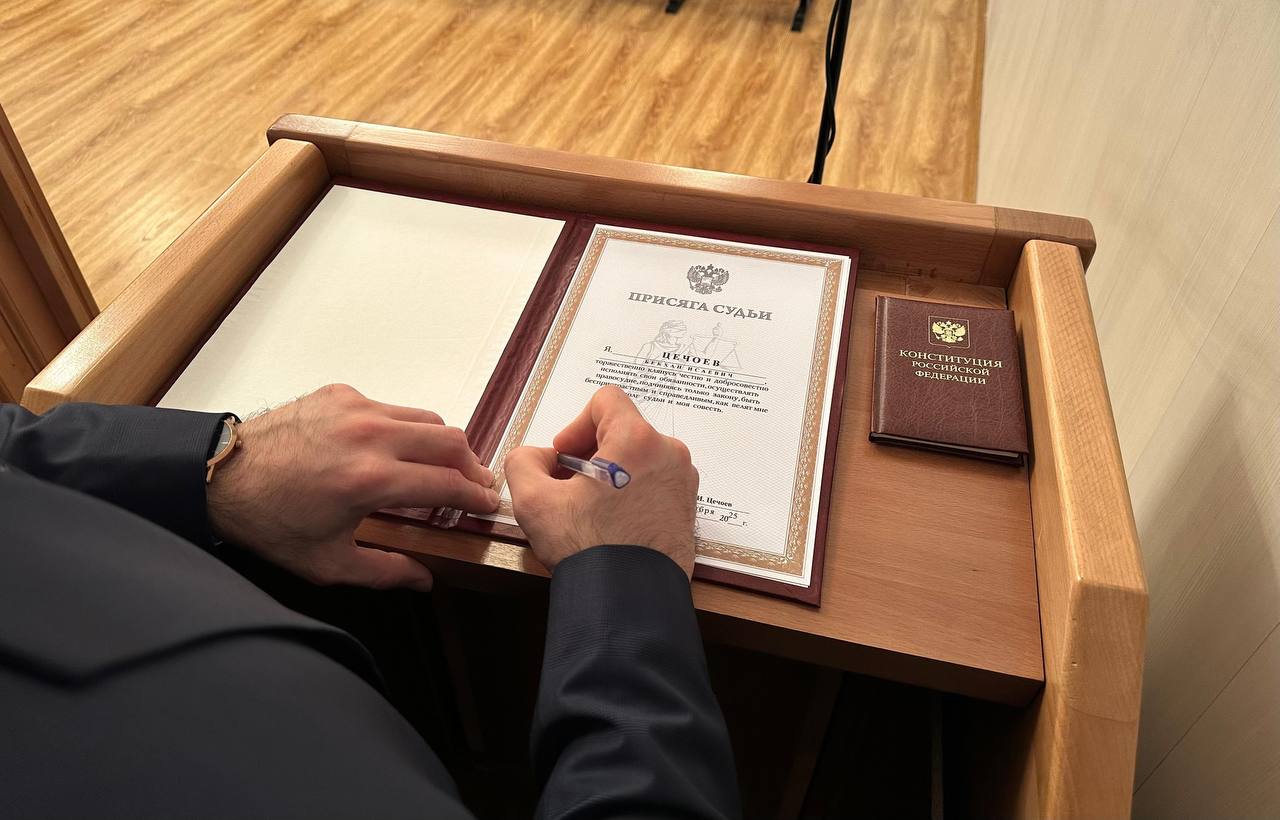 31 октября 2025 года в актовом зале Верховного Суда Республики Ингушетия прошла торжественная церемония приведения к присяге вновь назначенного судьи. Указом Президента Российской Федерации от 06.10.2025 № 706 Цечоев Бекхан Исаевич был назначен судьей Магасского районного суда Республики Ингушетия. Клятву служить закону он дал в присутствии судей Верховного суда Ингушетии, районных (городского) судов и мировых судей судебных участков республики. В судебной системе Ингушетии Цечоев Б.И. работает с февраля 2016 года. Свою служебную деятельность начал в Верховном Суде Республики Ингушетия с должности секретаря судебного заседания. С января 2019 по июнь 2024 года замещал должность помощника председателя Арбитражного суда Республики Ингушетия. С июня 2024 и до назначения на должность судьи работал помощником судьи Верховного Суда Республики Ингушетия. Председатель Верховного Суда Республики Ингушетия Газдиев И.Б. вручил служебное удостоверение судье Цечоеву Б.И., пожелав оправдать высокое доверие Президента Российской Федерации, подпись которого стоит на врученном удостоверении. С напутственным словом к вновь назначенному судье обратился начальник Управления Судебного департамента в Республике Ингушетия Гадаборшев М.М., пожелав успехов в профессиональной деятельности! ![]() ![]() Информация пресс-службы Верховного Суда Республики Ингушетия. При использовании ссылка обязательна. |