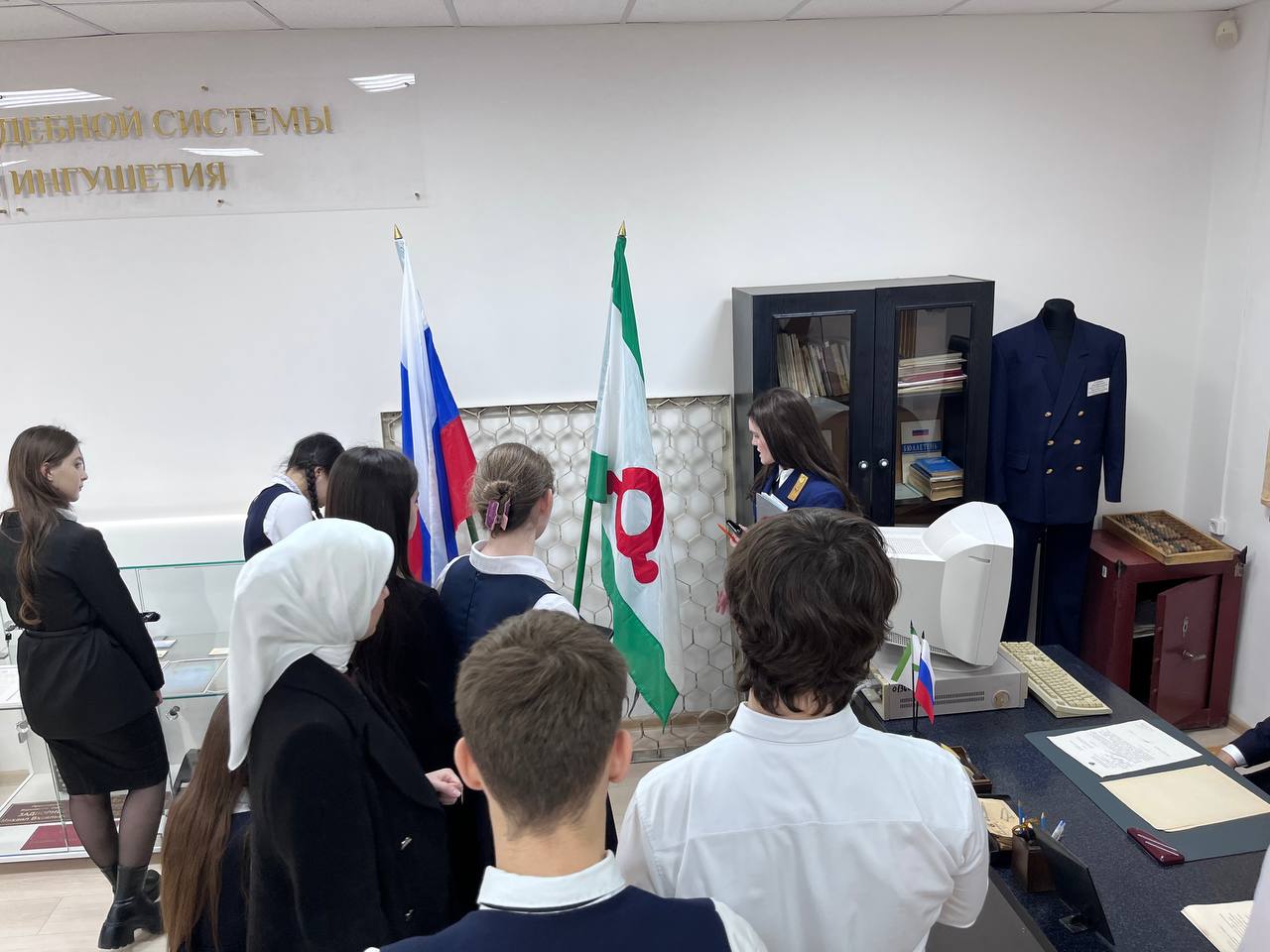 12 декабря 2025 года, в День Конституции Российской Федерации, знакомясь с миром права и устройством судебной системы России, учащиеся 11 «а» класса ГБОУ «СОШ № 2 г. Магас» в сопровождении учителя истории и обществознания Ганижевой М.А. посетили Верховный Суд Республики Ингушетия. В ходе обзорной экскурсии по зданию суда, которую провели помощник председателя суда Элина Целоева и начальник отдела информатизации Хазыр Яндиев, одиннадцатиклассники посетили всегда привлекающие наибольшее внимание залы судебных заседаний, включая залы для рассмотрения дел с участием коллегии присяжных заседателей, побывали в архиве и библиотеке суда, а также в конвойном помещении. Детям объяснили роли в судебном процессе государственного обвинителя, защитника, подсудимого, потерпевшего, истца, ответчика и других участников. Большой интерес у школьников вызвало посещение конвойного помещения, где администратор суда Хасан Цечоев показал камеры, где содержатся обвиняемые и подозреваемые при рассмотрении уголовных дел и материалов, и рассказал об устройстве камер. Ученики смогли задать интересующие их вопросы: от того, какими качествами должен обладать судья, как стать судьей, кто трудится в суде, до того, как организован типичный рабочий день, какие категории дел рассматривает суд. После беседы в зале судебного заседания об Основном законе государства – Конституции Российской Федерации экскурсанты прошли в Музей истории судебной системы Республики Ингушетия, где помощник председателя суда рассказала ребятам об истории и структуре Верховного суда Ингушетии, символах судебной власти, истории создания музея, его структуре. Музей истории республиканской судебной системы вызвал неподдельный восторг и восхищение: можно было прикоснуться к экспонатам, посидеть за столом в рабочем кабинете судьи и в зале судебного заседания. Ученики познакомились со специальной экспозицией к 80-летию Победы в Великой Отечественной войне «Гордость и память», посвященной двенадцати героям Великой Отечественной войны – судьям, родственникам судей и работников аппарата Верховного Суда Республики Ингушетия. Кульминацией визита стал просмотр учащимися первой ингушской судебной кинокартины «МЕХК-КХЕЛ» (признан XI Международным кинофестивалем «Золотая Башня» лучшим ингушским фильмом 2025 года), снятой в 2024 году гослужащими судебной системы к 100-летнему юбилею судебной системы республики и 30-летию Верховного суда Ингушетии и повествующей о разборе на Мехк-кхел (Суд страны) в древней Ингушетии дела о причинении смерти по неосторожности. Кроме того, детям был показан подготовленный в целях правового просвещения граждан и повышения явки кандидатов в присяжные заседатели в суды видеоролик Верховного Суда Республики Ингушетия «Правосудие народа: что значит быть присяжным заседателем», удостоенный в 2024 году специального приза редакции газеты «Московский комсомолец». В завершение встречи педагог и школьники поблагодарили работников суда за интереснейшую экскурсию и пожелали успехов в профессиональной деятельности. Эта экскурсия не только расширила кругозор учащихся, но и дала им реальное представление о профессии судьи. Возможно, для кого-то из ребят этот визит станет первым шагом на пути в профессию, посвященную служению закону, обществу, государству. ![]() ![]
