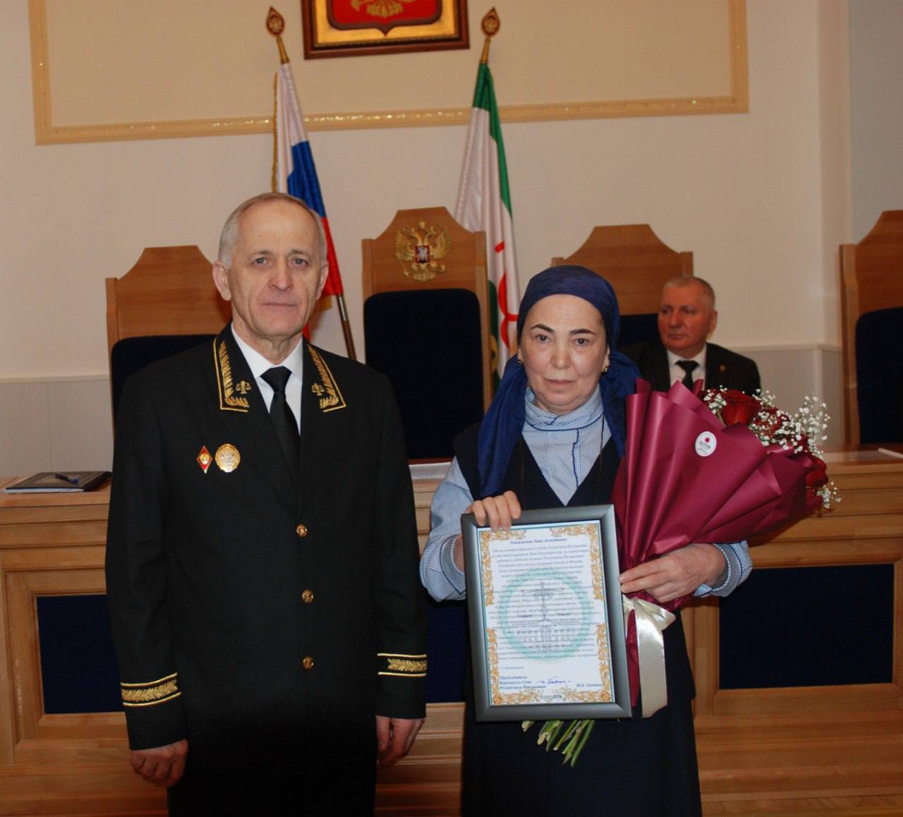 27 февраля 2026 года в зале президиума Верховного Суда Республики Ингушетия состоялось торжественное собрание, посвященное уходу судьи Верховного Суда Республики Ингушетия Горокаевой Хавы Ахметовны и мирового судьи судебного участка № 19 Республики Ингушетия Яндиевой Хадишат Хусейновны в почетную отставку. В мероприятии приняли участие судейский корпус Республики Ингушетия и начальник Управления Судебного департамента в Республике Ингушетия Гадаборшев М.М. Решением Квалификационной коллегии судей Республики Ингушетия № 26 от 28 ноября 2025 года полномочия судьи Верховного Суда Республики Ингушетия Горокаевой Х.А. прекращены 2 февраля 2026 года и решением Квалификационной коллегии судей Республики Ингушетия № 01 от 23 января 2026 года полномочия мирового судьи судебного участка № 19 Республики Ингушетия Яндиевой Х.Х. прекращены 30 января 2026 года в связи с их письменными заявлениями об отставке на основании подпункта 1 пункта 1 статьи 14 Закона Российской Федерации «О статусе судей в Российской Федерации». Председатель Верховного Суда Республики Ингушетия Газдиев И.Б. от лица всего судейского сообщества республики поблагодарил Горокаеву Х.А. и Яндиеву Х.Х. за совместную плодотворную работу в судебной системе Ингушетии, пожелав им крепкого здоровья, счастья и благополучия. В ответном слове Горокаева Х.А. и Яндиева Х.Х. поблагодарили коллег за теплые слова и пожелания. Горокаева Хава Ахметовна – судья второго квалификационного класса, Заслуженный юрист Республики Ингушетия. С 1992 по 2001 год работала адвокатом Коллегии адвокатов Чечено-Ингушской Республики и Республики Ингушетия. С 2001 по 2009 год – судья Назрановского районного суда, с 2009 по 2015 год – судья (2011-2012 гг. – исполняющая обязанности председателя) Магасского районного суда. Указом Президента Российской Федерации от 16 марта 2015 года № 135 назначена на должность судьи Верховного Суда Республики Ингушетия. Общий стаж работы в должности судьи – свыше 24 лет. Яндиева Хадишат Хусейновна – судья седьмого квалификационного класса. С 1992 по 2010 год работала адвокатом Коллегии адвокатов Чечено-Ингушской Республики и Республики Ингушетия. С 2010 года – мировой судья судебного участка № 19 Республики Ингушетия. Общий стаж работы в должности судьи – свыше 15 лет. ![]() ![]() Информация пресс-службы Верховного Суда Республики Ингушетия. При использовании ссылка обязательна. |